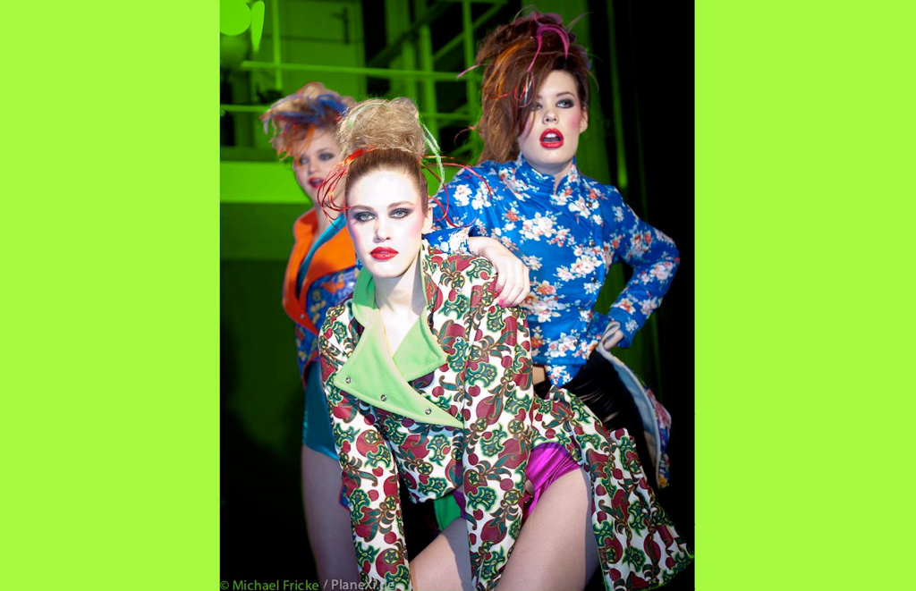 Colorful light coats, neon-dresses, college jackets and toxic-swimwear. DeDeRon enhanced with new and reclaimed coffee sack material.